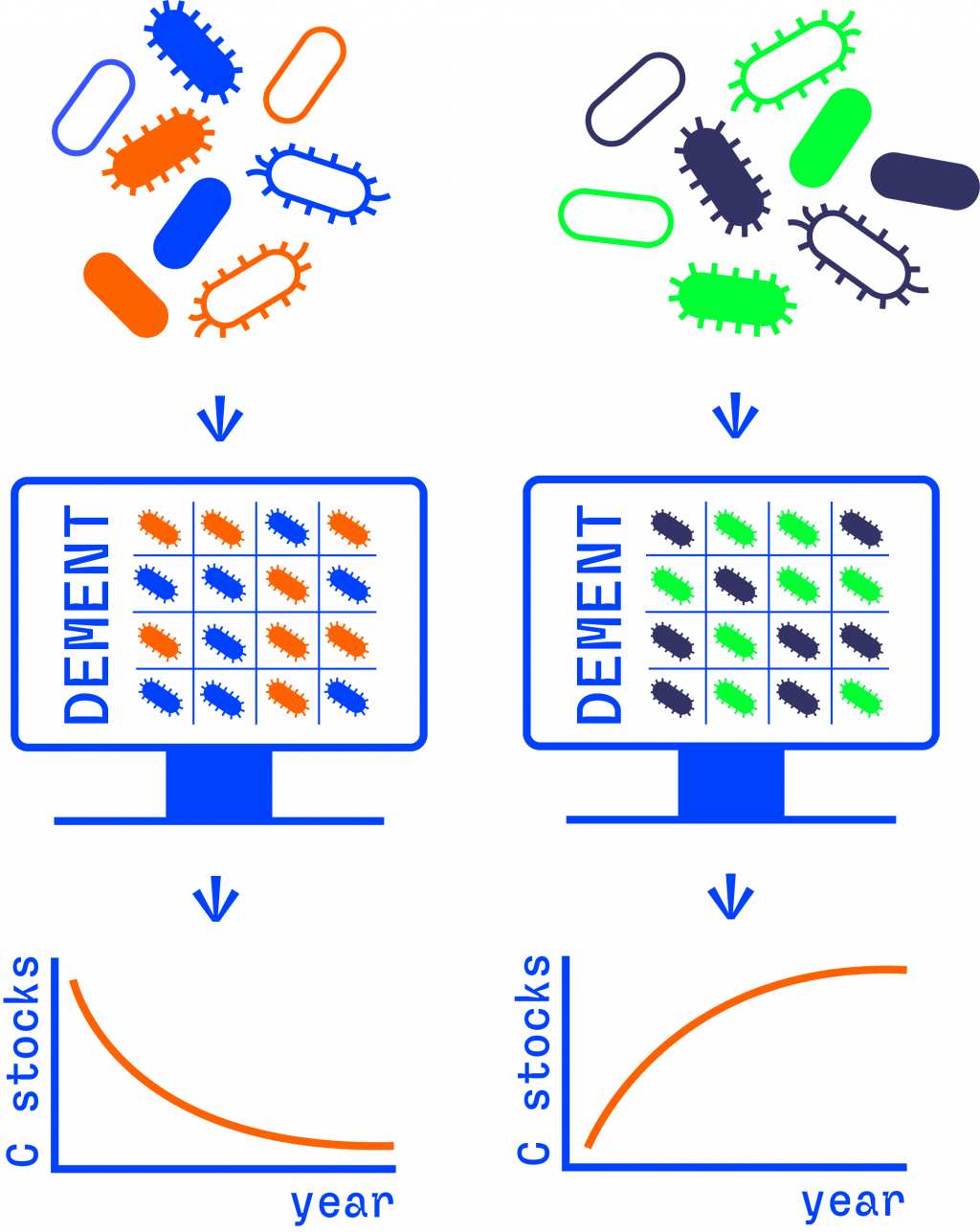 The GAMEchange project aims to overcome this limitation by leveraging the rapid expansion of microbial genomic data to build a new generation of biogeochemical models that explicitly incorporate microbial adaptation to global change. By combining genomics, eco-evolutionary theory, microbial modeling, and machine learning, GAMEchange links microscopic microbial processes to global climate projections. The goal is to determine where, when, and to what extent microbial evolution alters future soil carbon trajectories, and to lay the groundwork for a more realistic representation of soil–climate feedbacks in Earth system models.
